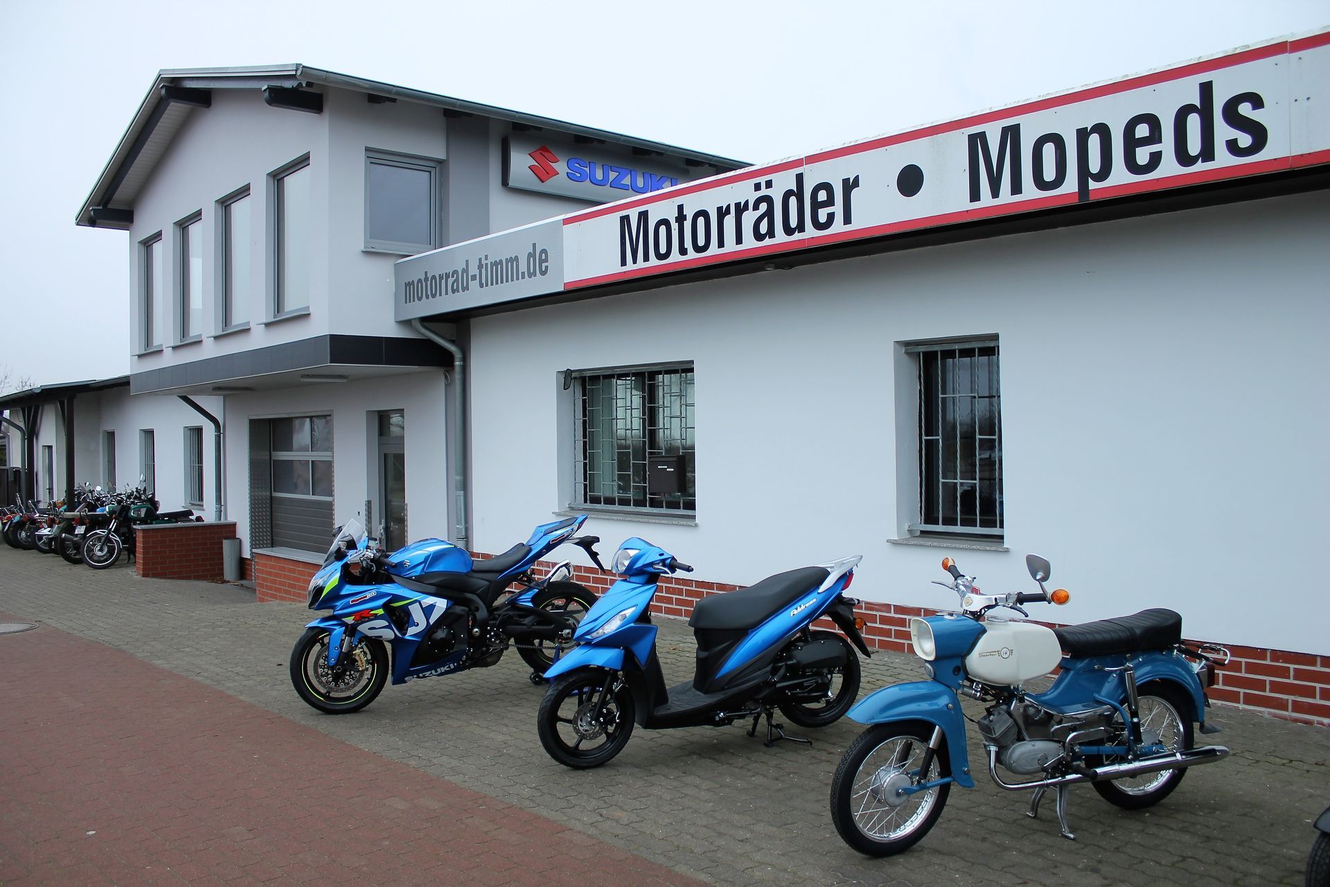 Suzuki- Vertragshändler wurde Motorrad Timm 1997. Mit dem Umzug in die neuen Räumlichkeiten in Reddelich waren die Voraussetzungen für den Vertrag gegeben. Heute sind wir ein solider Ansprechpartner für Biker fast aller Marken. Vom Motorrad für Einsteiger bis zur Reisemaschine für Langstrecken ist alles im Angebot. In einer großen Ausstellung werden alle Neufahrzeuge entsprechend präsentiert. Wir führen auch Bekleidung, Zubehör, Reifen und Chopperzubehöhr von namhaften Herstellern. Gern stellen wir uns neuen Herausforderungen. Außerdem sind wir Oldtimer-Depotpartner von MZA und FEZ für Motorräder&Mopeds der Marken Simson, MZ, IWL, EMW und AWO.